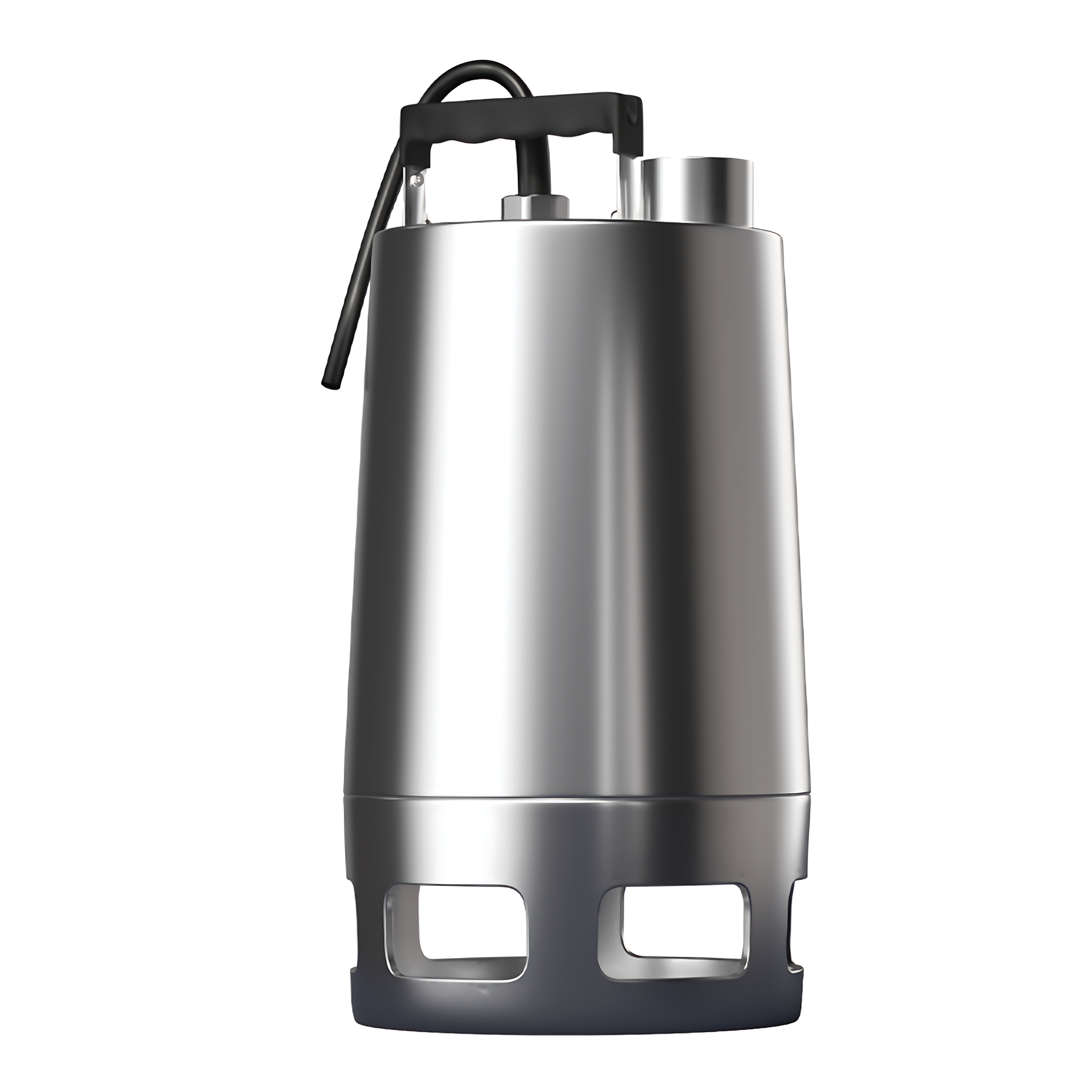 Одноступенчатый погружной насос с полуоткрытым рабочим колесом, вертикальным напорным патрубком и сетчатым фильтром в основании.