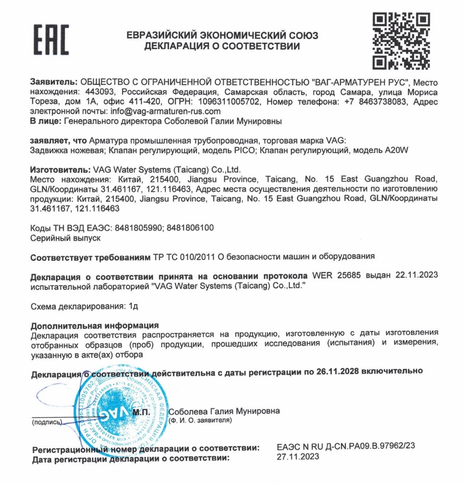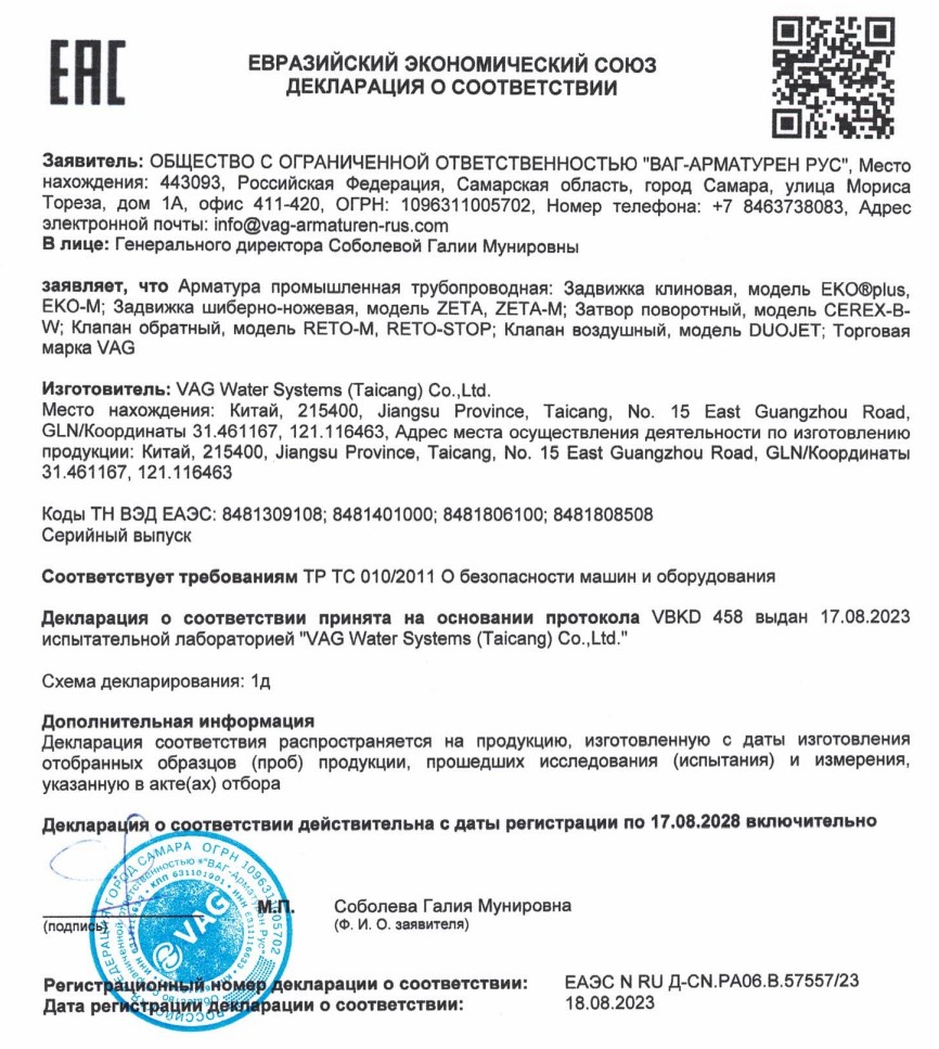 VAG - трубопроводная арматура для водоснабжения, водоотведения и канализации купить в Екатеринбурге